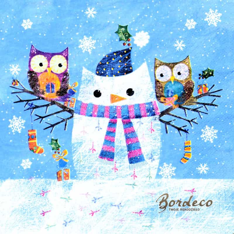 Serwetka do decoupage bałwanek i sówki 33x33 TI-FLAIR. Unikat