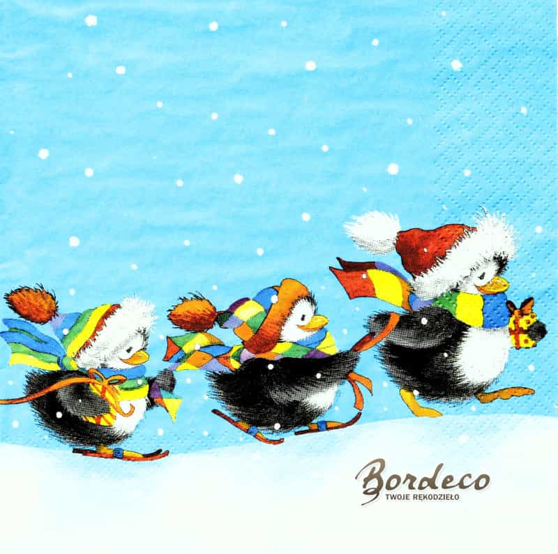 Serwetka do decoupage cztery pingwinki w czapkach 33x33 TI-FLAIR. Unikat