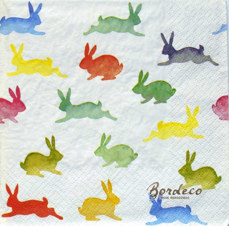 Serwetka do decoupage kolorowe zające 33x33 TI-FLAIR. Unikat