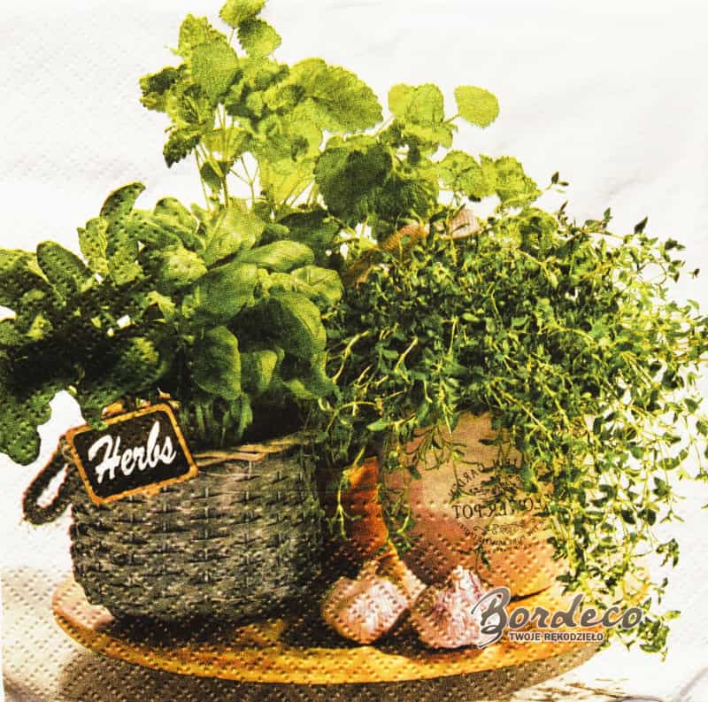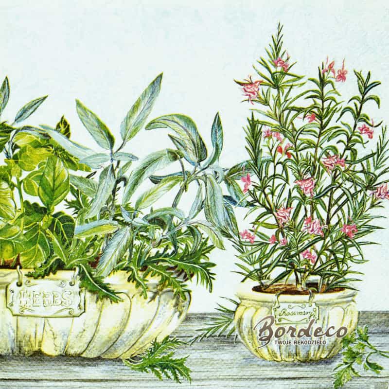 Serwetka decoupage firmy PAW zioła w donicach 33x33cm