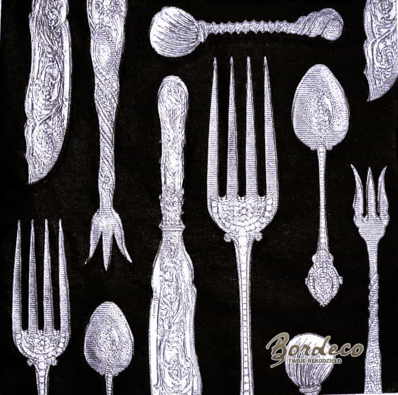 Serwetka do decoupage srebrne sztućce na czarnym tle 33x33 PPD Unikat