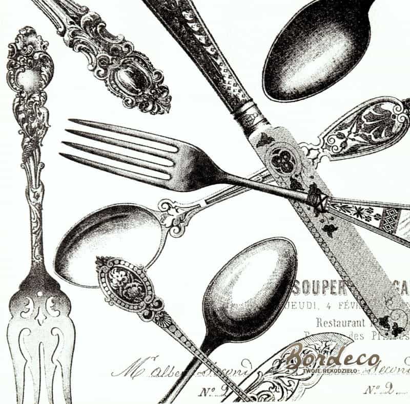 Serwetka do decoupage firmy IHR ozdobne sztućce retro 33x33 IHR. Unikat.