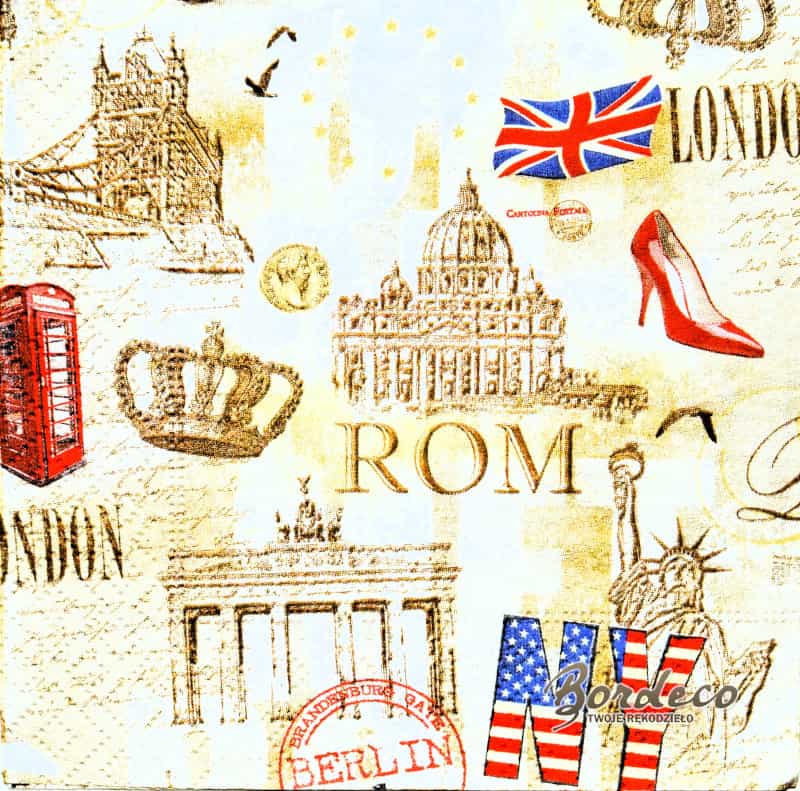 Serwetka do decoupage miasta i ich symbole 25x25 R2S Unikat