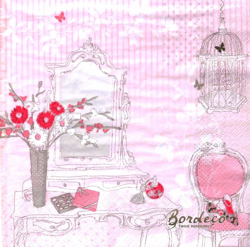 Serwetka do decoupage toaletka w różowym pokoju 33x33 TI-FLAIR Unikat