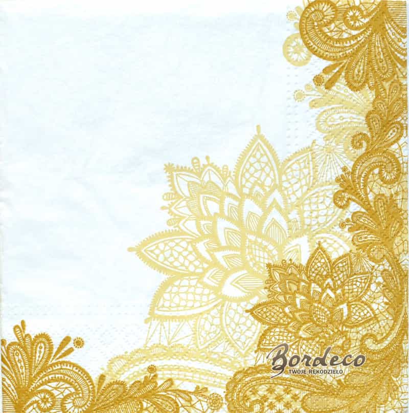 Serwetka do decoupage złota koronka, haft 33x33 TETEaTETE Unikat