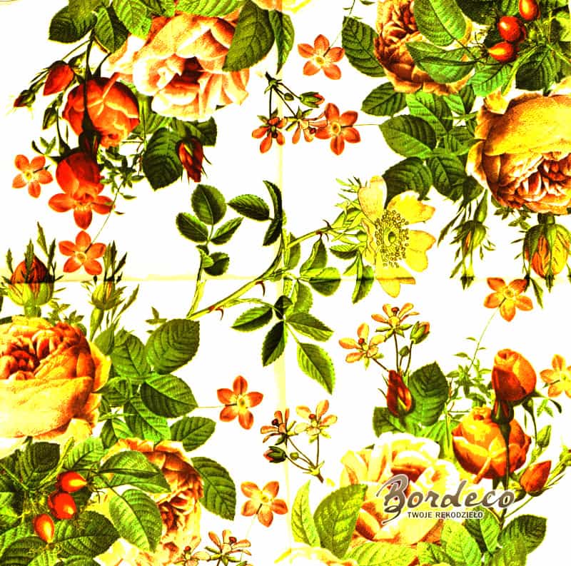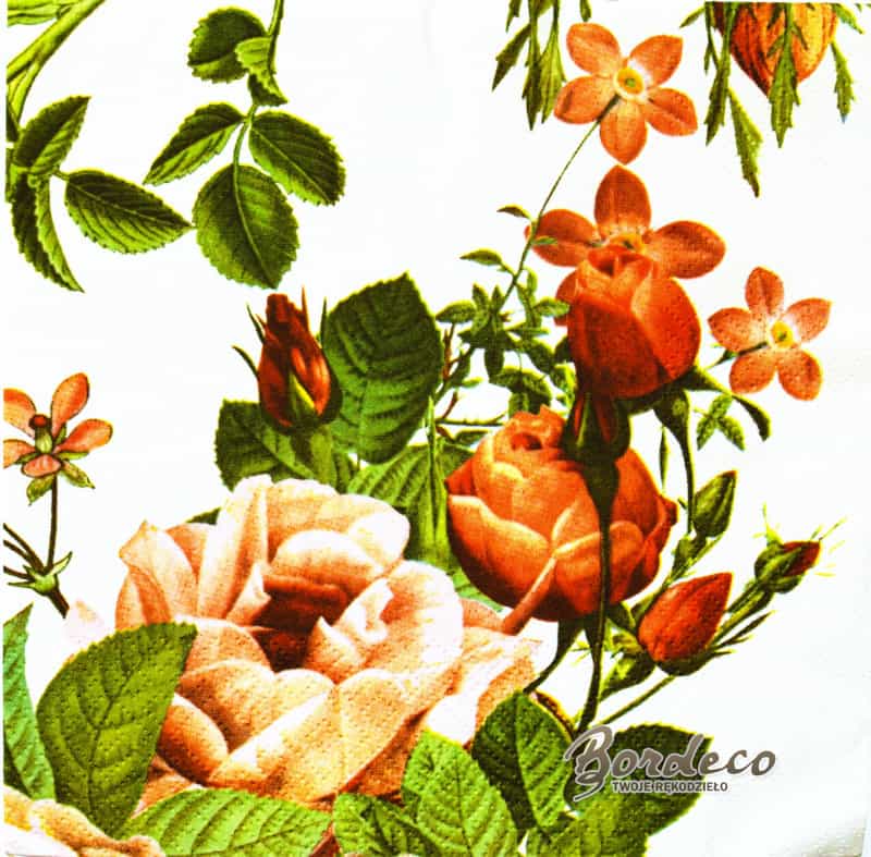 Serwetka decoupage kwiaty w łososiowej tonacji kolorystycznej 33x33 AHA Unikat