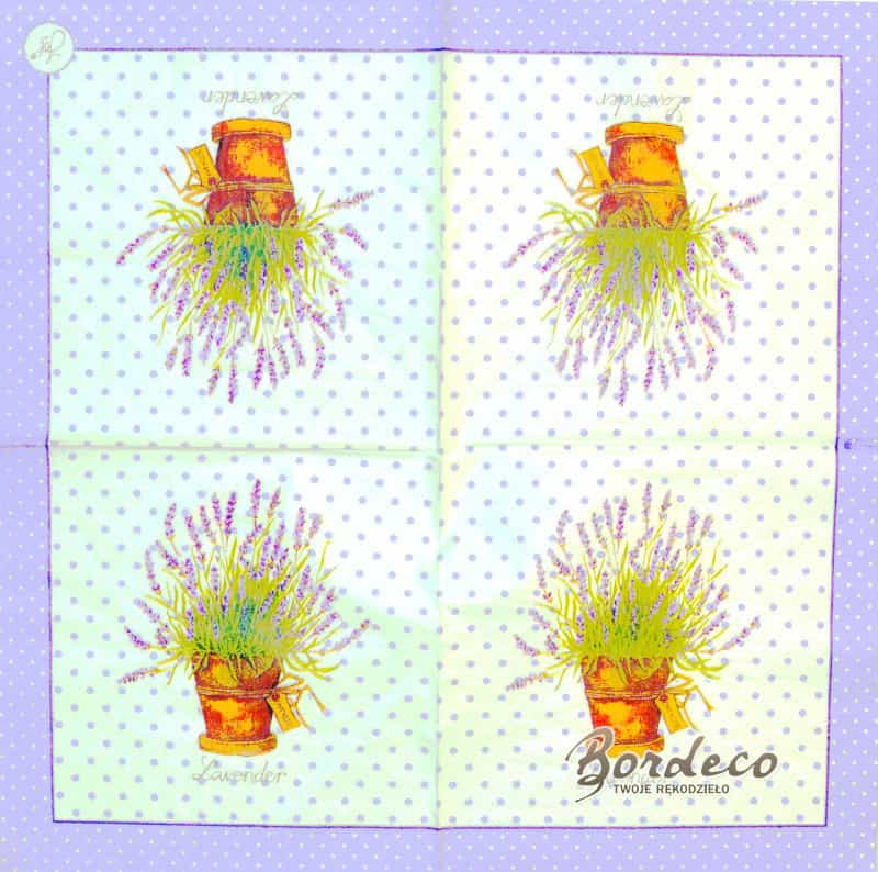 Serwetka do decoupage firmy TERSEEGE z motywem lawendy w doniczce 33x33cm. Unikat.