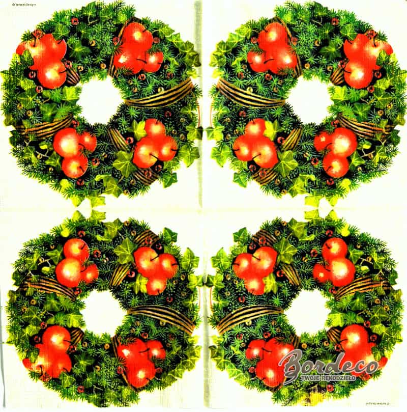 Strona główna ? Serwetki ? Serwetka do decoupage adwentowy wianek z czerwonymi jabłkami 33x33 PPD Unikat
