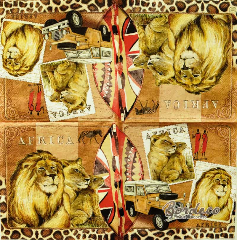 Serwetka do decoupage Afryka, lwy, safari 33x33 SWEET PAC Unikat