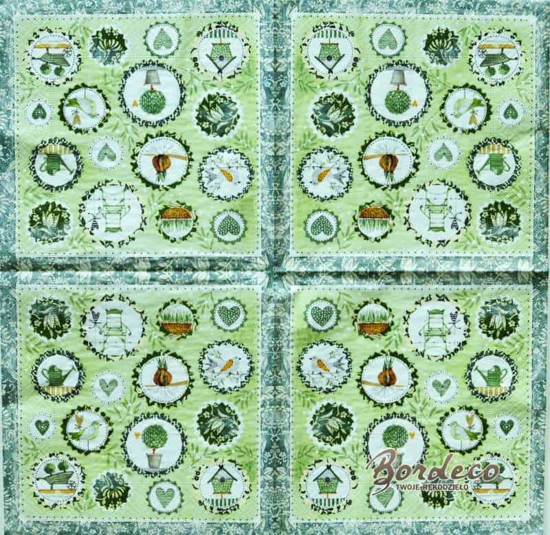 Serwetka do decoupage firmy Paper+Design  z motywem akcesoriów do ogrodu 33x33.cm. Unikat