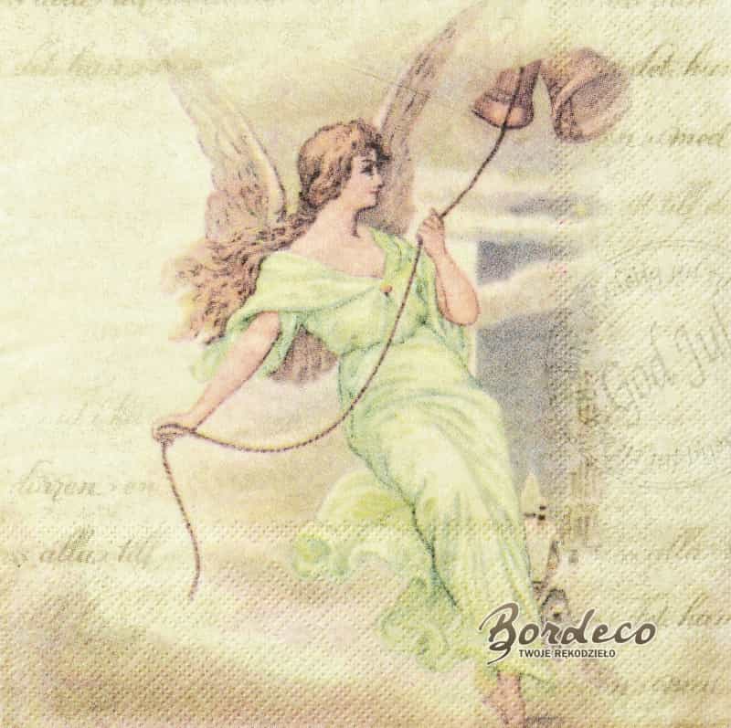 Serwetka do decoupage firmy DUNI z motywem anioła z dzwonami 33x33cm. Unikat.