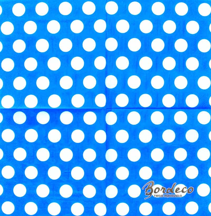 Serwetka do decoupage seria PIXIE DESIGN z motywem białych grochów na niebieskim tle 33x33cm.Unikat.