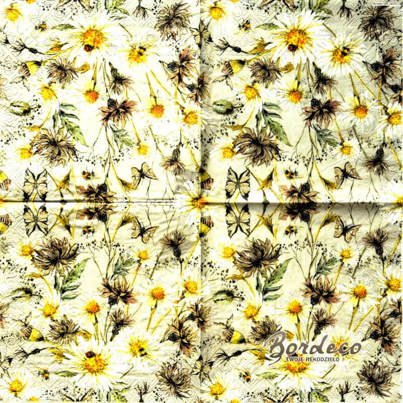 Strona główna ? Serwetki ? Serwetka do decoupage białe i brązowe polne kwiaty, 33x33 PIXIE Unikat