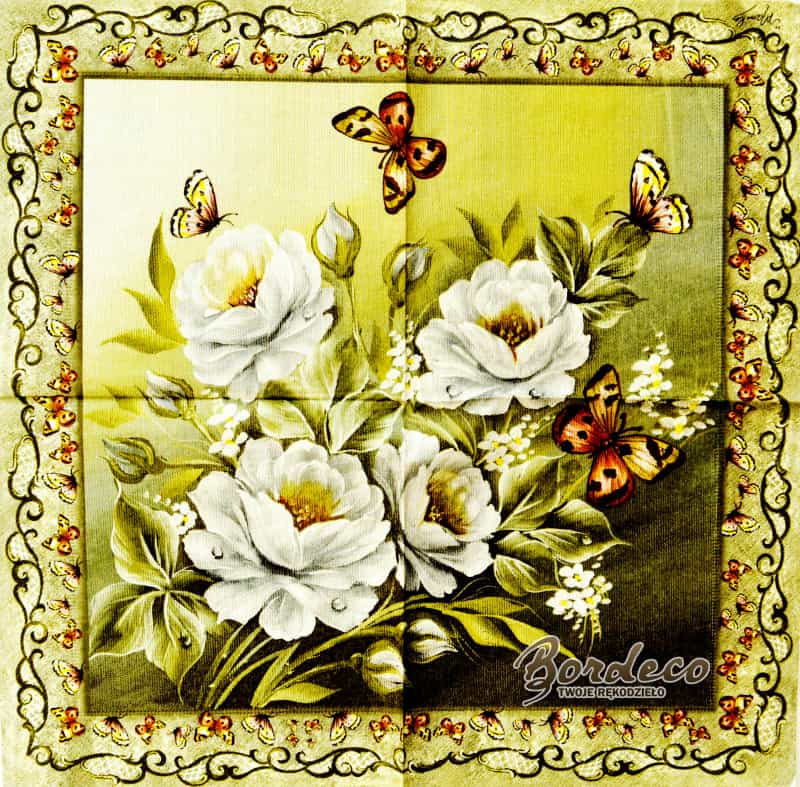 Serwetka do decoupage brazylijska kompozycja białych róż 33x33 R+F UnikatSerwetka do decoupage brazylijska kompozycja białych róż 33x33 R+F Unikat