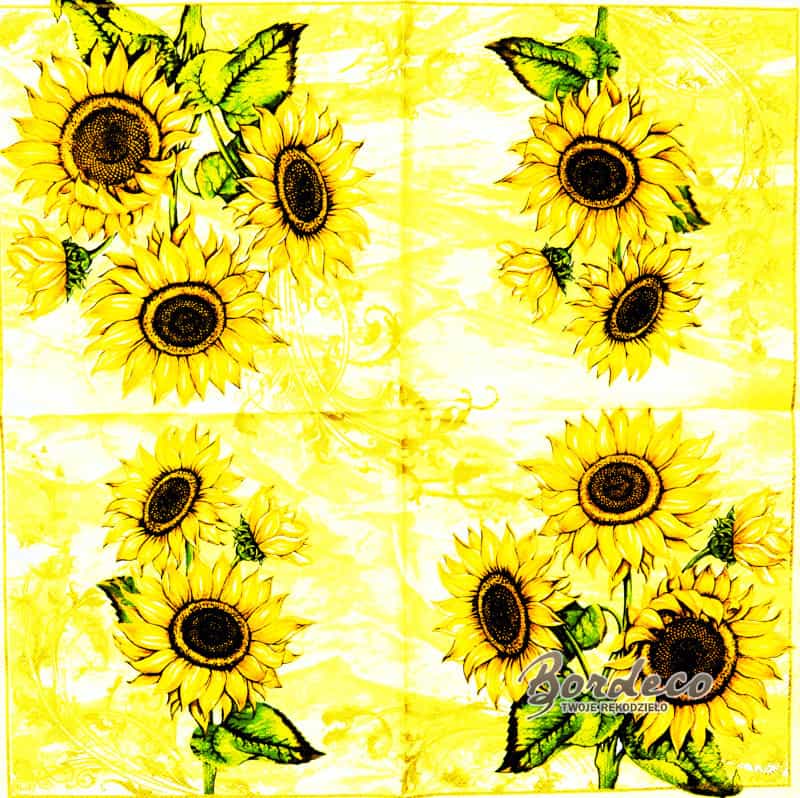 Serwetka do decoupage seria MAKI z motywem bukietu słoneczników 33x33cm. Unikat