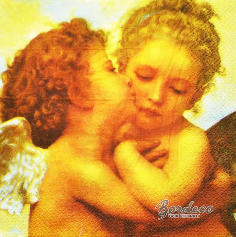 Serwetka do decoupage cherubinki w objęciach z tekstem 33x33 LUXY Unikat