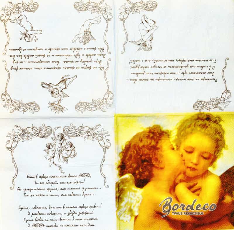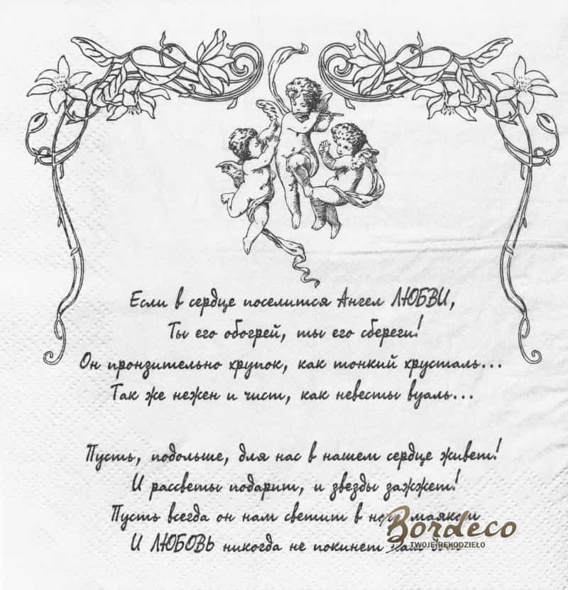 Serwetka do decoupage cherubinki z tekstem 33x33 LUXY UnikatSerwetka do decoupage cherubinki z tekstem 33x33 LUXY UnikatSerwetka do decoupage cherubinki z tekstem 33x33 LUXY Unikat