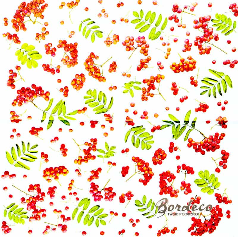 Serwetka do decoupage seria DAISY z motywem czerwonej jarzębiny 33x33cm. Unikat