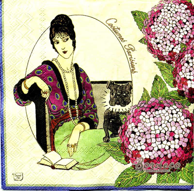 Strona główna ? Serwetki ? Serwetka do decoupage dama z pieskiem i hortensje 33x33 SWEET PAC Unikat
