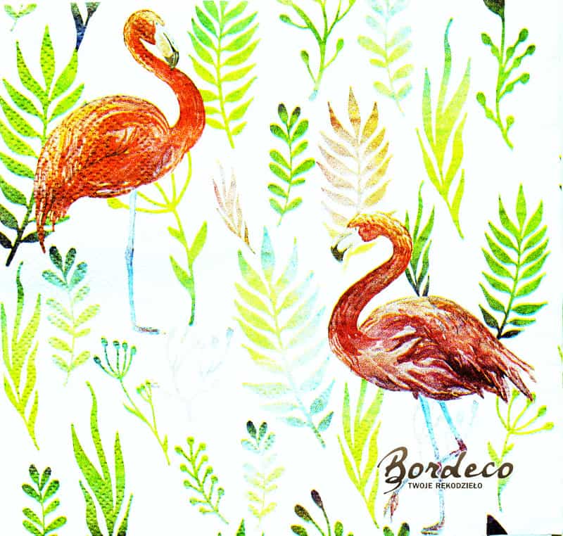 Serwetka do decoupage firmy RAVI z motywem dwóch flamingów 33x33cm. Unikat.