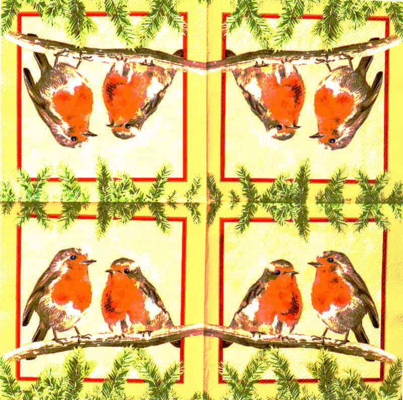 Serwetka do decoupage firmy Paper+Design  z motywem dwóch rudzików na gałązce 33x33.cm. Unikat