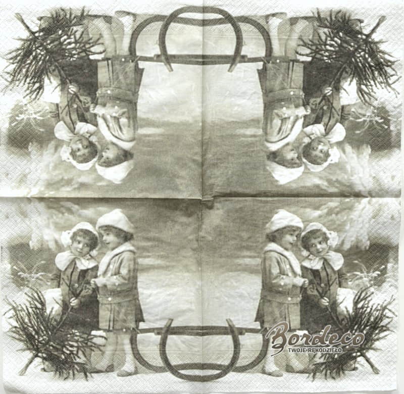 Serwetka do decoupage dziewczynki z choinką 33x33 SAGENSerwetka do decoupage dziewczynki z choinką 33x33 SAGEN