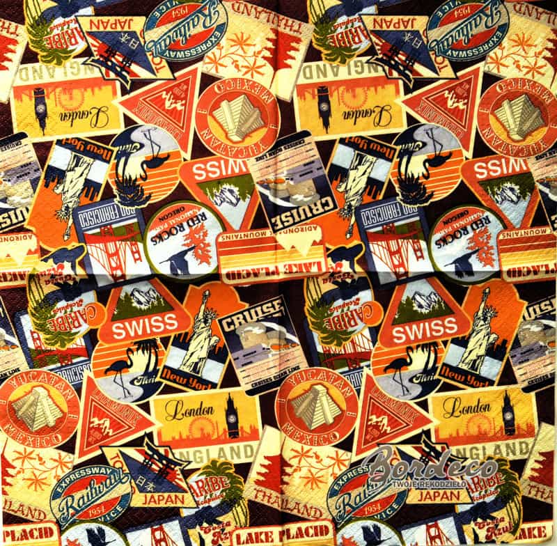 Serwetka do decoupage emblematy państw i miast 33x33 PAW UnikatSerwetka do decoupage emblematy państw i miast 33x33 PAW Unikat
