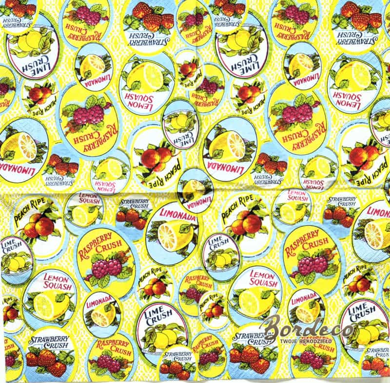 Strona główna ? Serwetki ? Serwetka do decoupage etykiety owocowych napojów 33x33 Paper+Design Unikat
