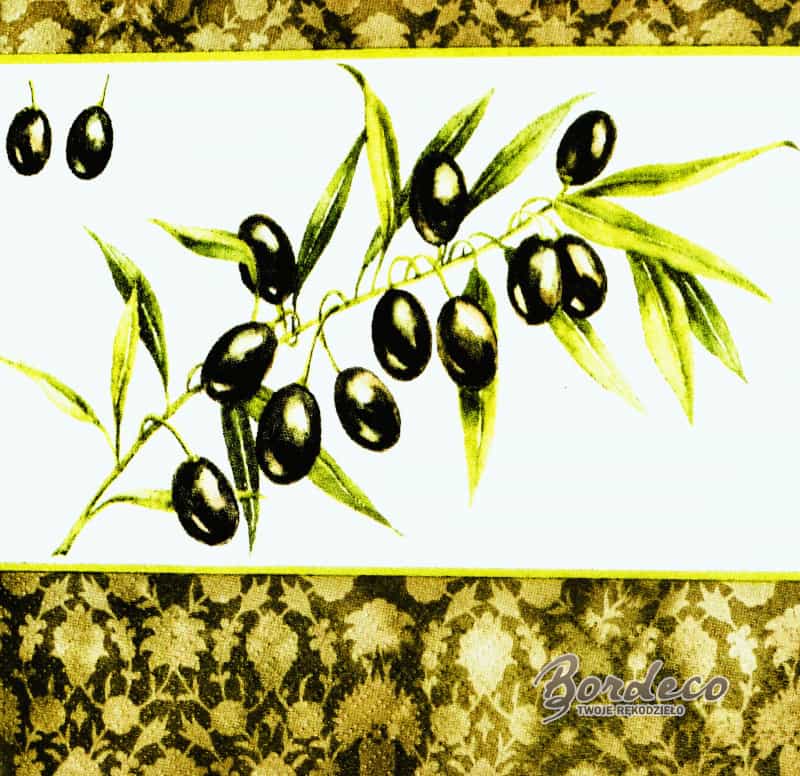 Serwetka do decoupage firmy PPD z motywem gałązki czarnych oliwek 33x33.cm. Unikat