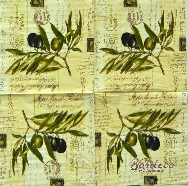 Serwetka do decoupage gałązka oliwki 33x33 PPD UnikatSerwetka do decoupage gałązka oliwki 33x33 PPD Unikat