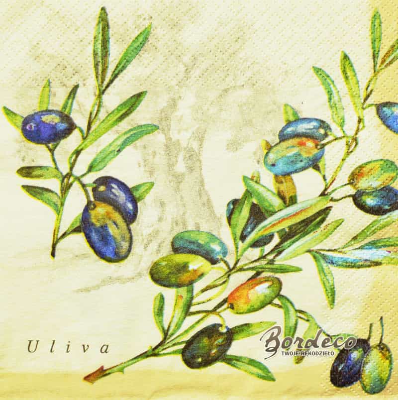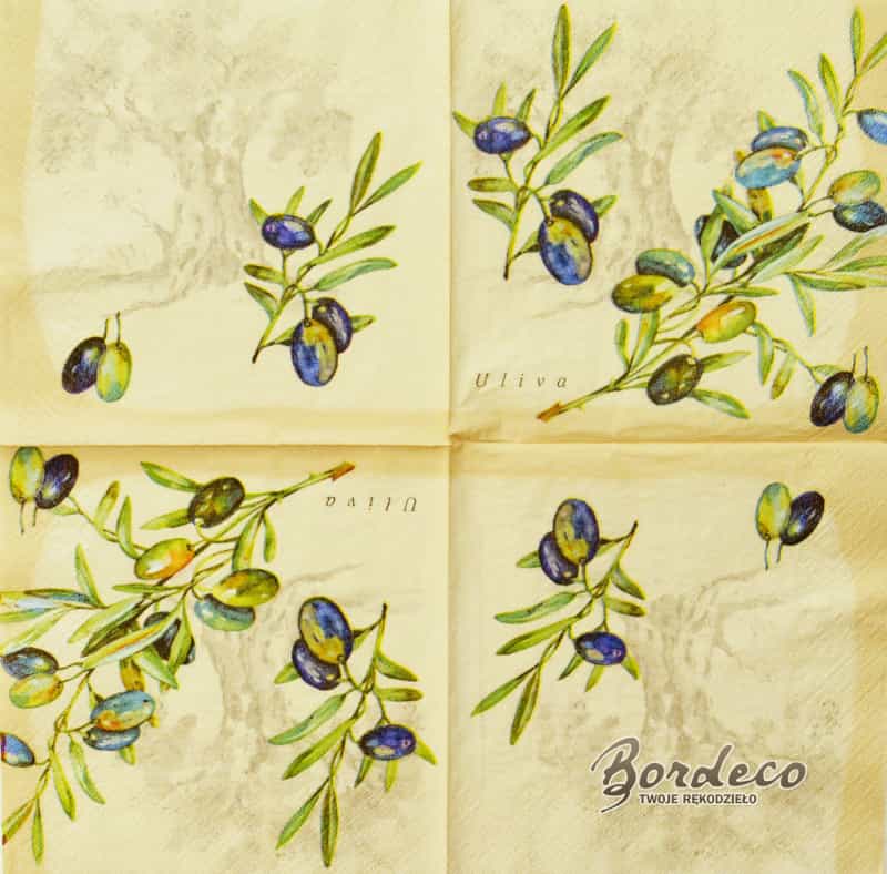Serwetka do decoupage firmy BRAUN+, seria Viva z motywem gałązki oliwek  33x33cm. Unikat
