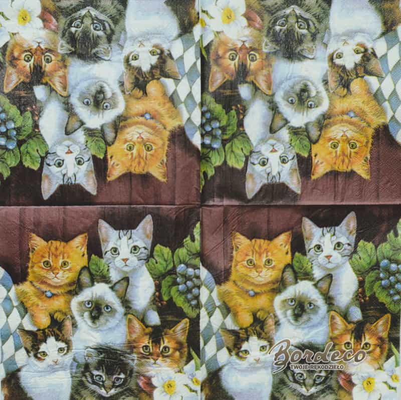 Serwetka do decoupage firmy Paper+Design  z motywem gromady kotków 33x33.cm. Unikat