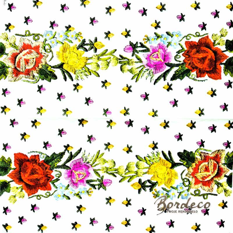 Serwetka do decoupage haftowane w ludowym stylu kwiaty 33x33 MAKI Unikat