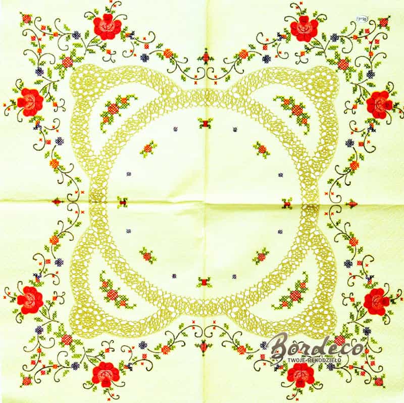 Serwetka do decoupage seria MAKI z motywem haftowanego obrusu 33x33cm. Unikat