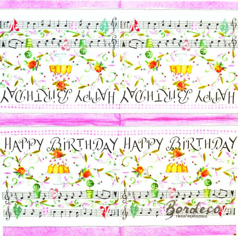 Serwetka do decoupage firmy COLOURFUL LIFE z urodzinowym motywem HAPPY BIRTHDAY 25x25cm. Unnikat