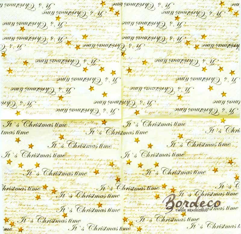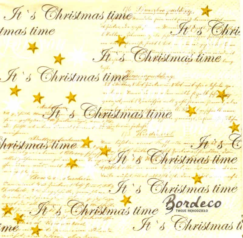 Serwetka do decoupage firmy Paper+Design  z napisami It's Christmas time 33x33.cm. Unikat