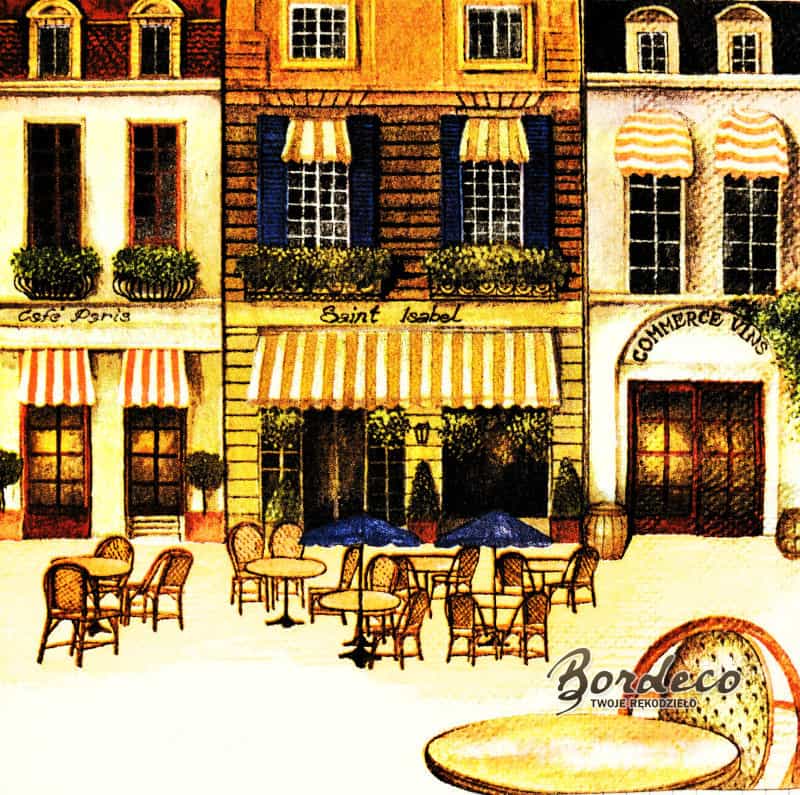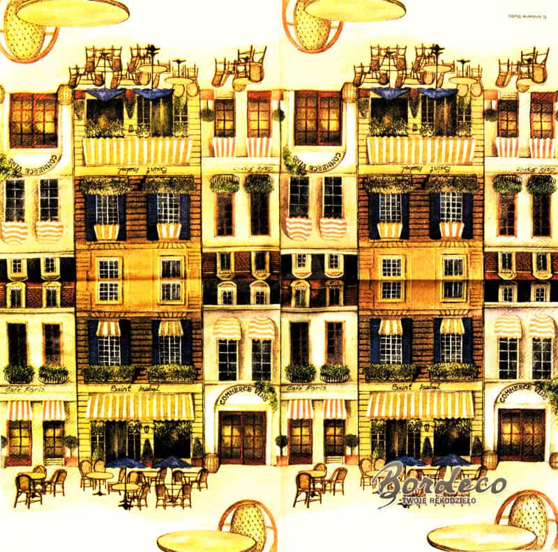 Serwetka do decoupage kamieniczki z kawiarenką AMBIENTE UnikatSerwetka do decoupage kamieniczki z kawiarenką AMBIENTE Unikat