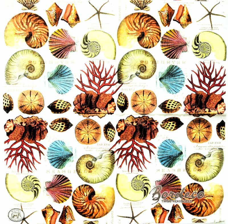 Serwetka do decoupage kolorowe muszle morskie 33x33 MICHEL Unikat