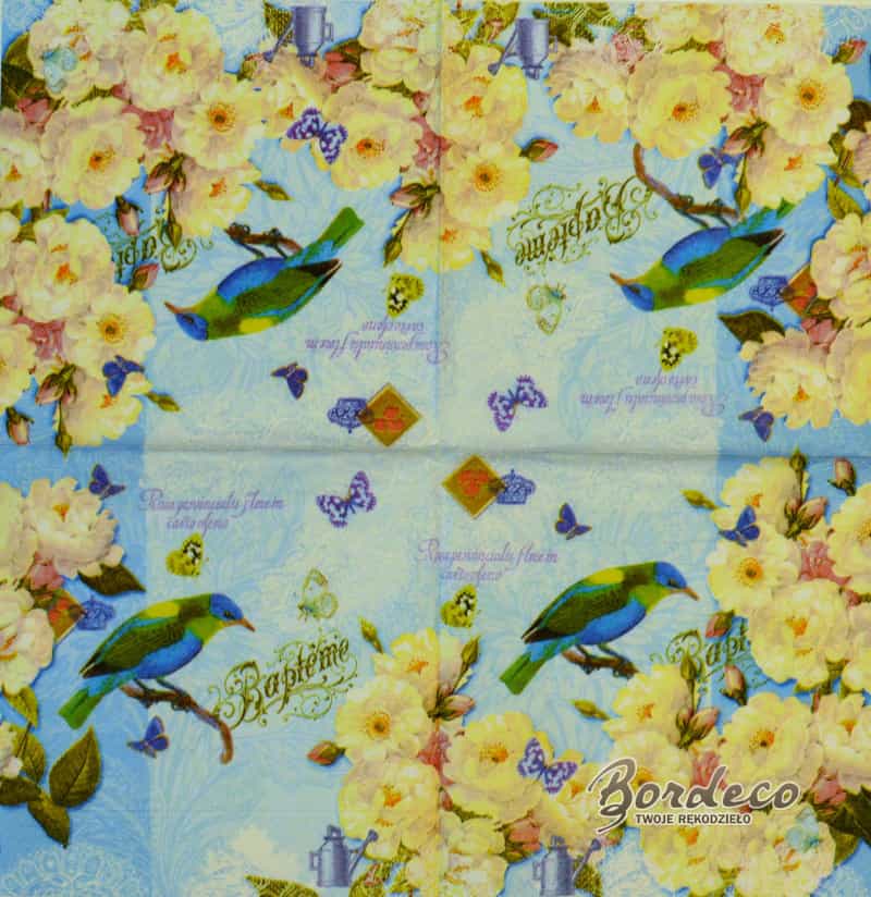 Serwetka do decoupage kolorowy ptaszek i białe róże 33x33 DUNI. Unikat