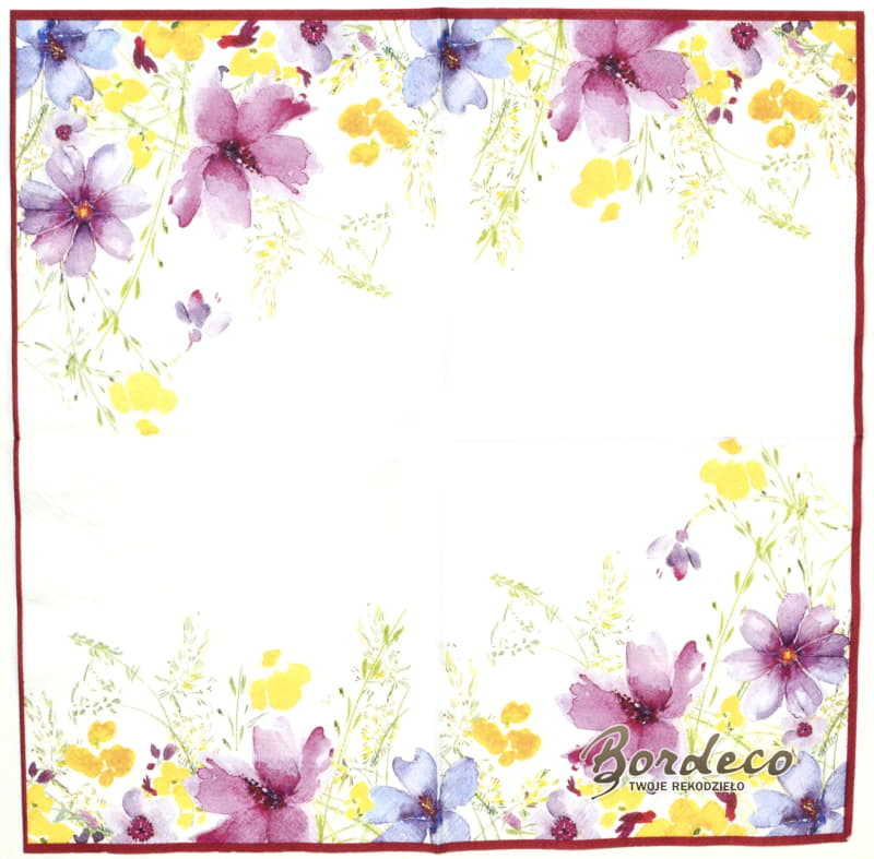 Serwetka do decoupage firmy VILLEROY&BOCH z motywem polnych kwiatów malowanych farbami wodnymi 25x25cm.