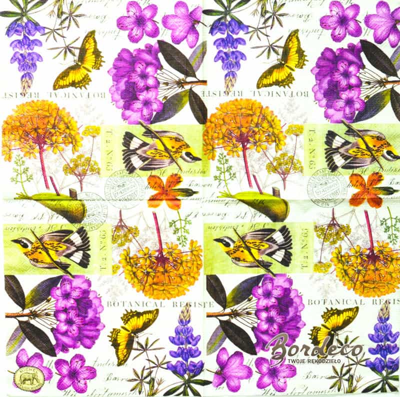 Serwetka do decoupage kwiaty, ptak i motyl 33x33 MICHEL Unikat