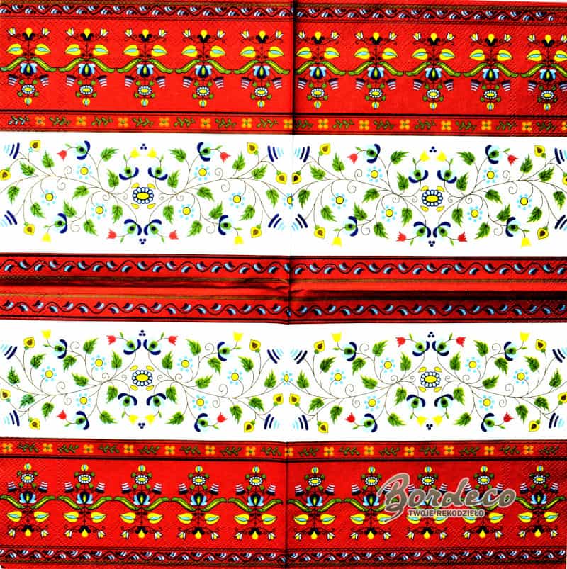 Serwetka do decoupage firmy MAKI z motywem ludowej wycinanki 33x33cm. Unikat.