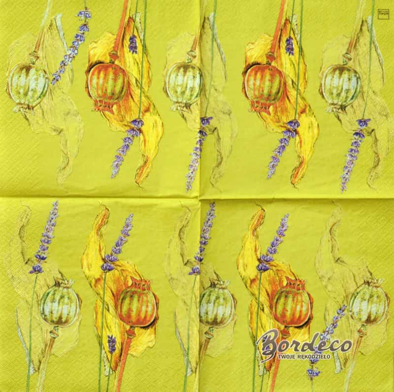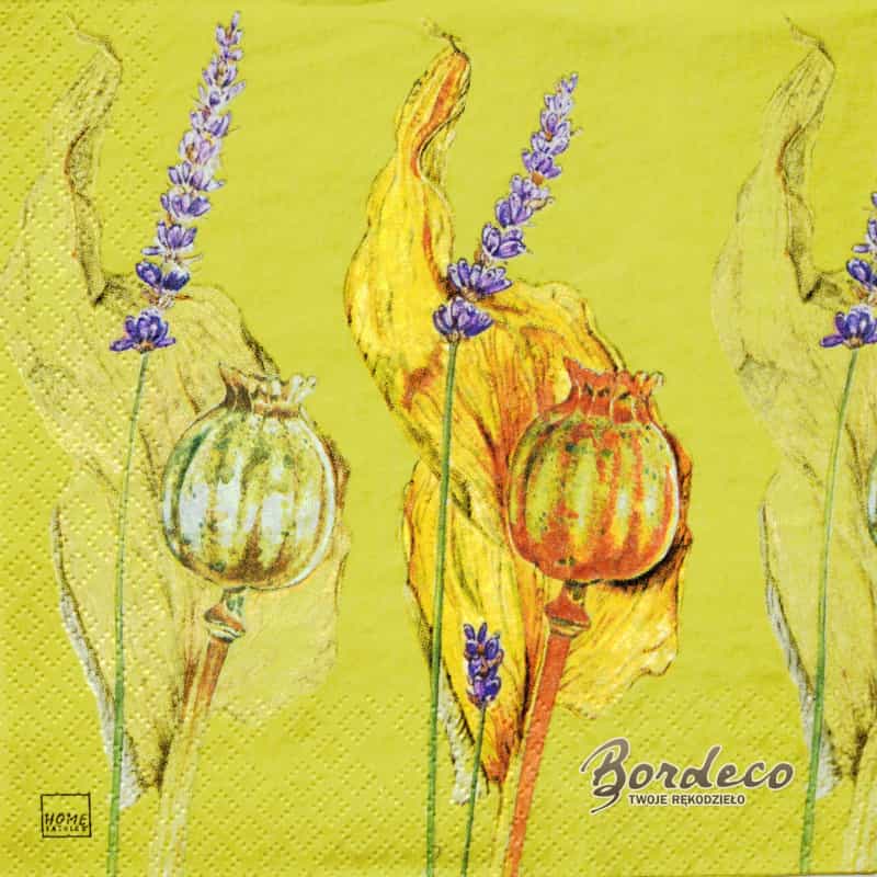 Serwetka do decoupage firmy HOME FASHION makówki i lawenda 33x33cm. Unikat