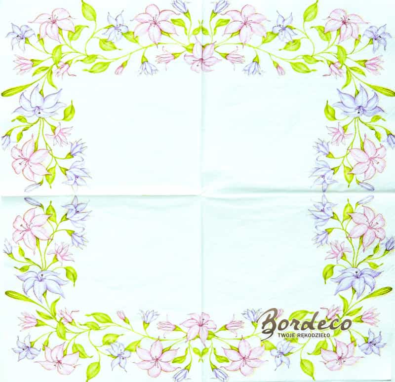Serwetka do decoupage seria DAISY z motywem różowych i fioletowych kwiatów 33x33cm. Unikat