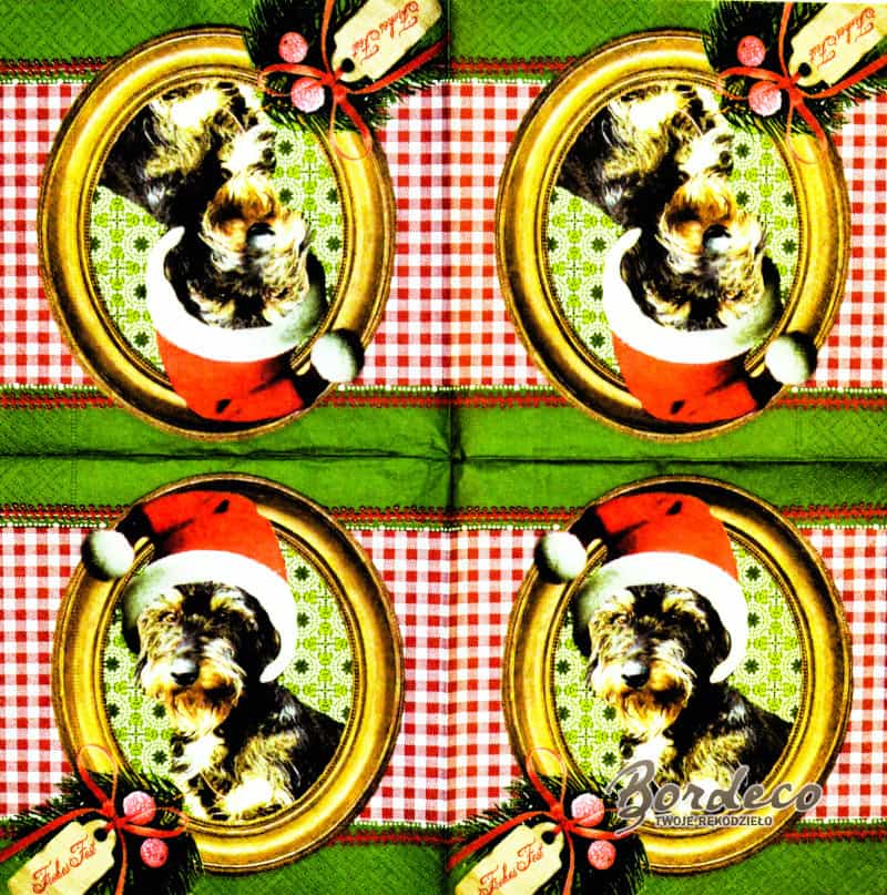 Serwetka do decoupage mały piesek w złotej ramce 33x33 COLOURFUL Unikat