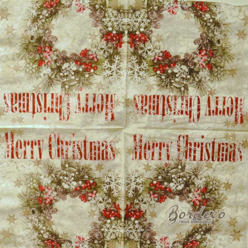 Serwetka do decoupage Merry Christmas ze świątecznym wiankiem 33x33 PAW Unikat