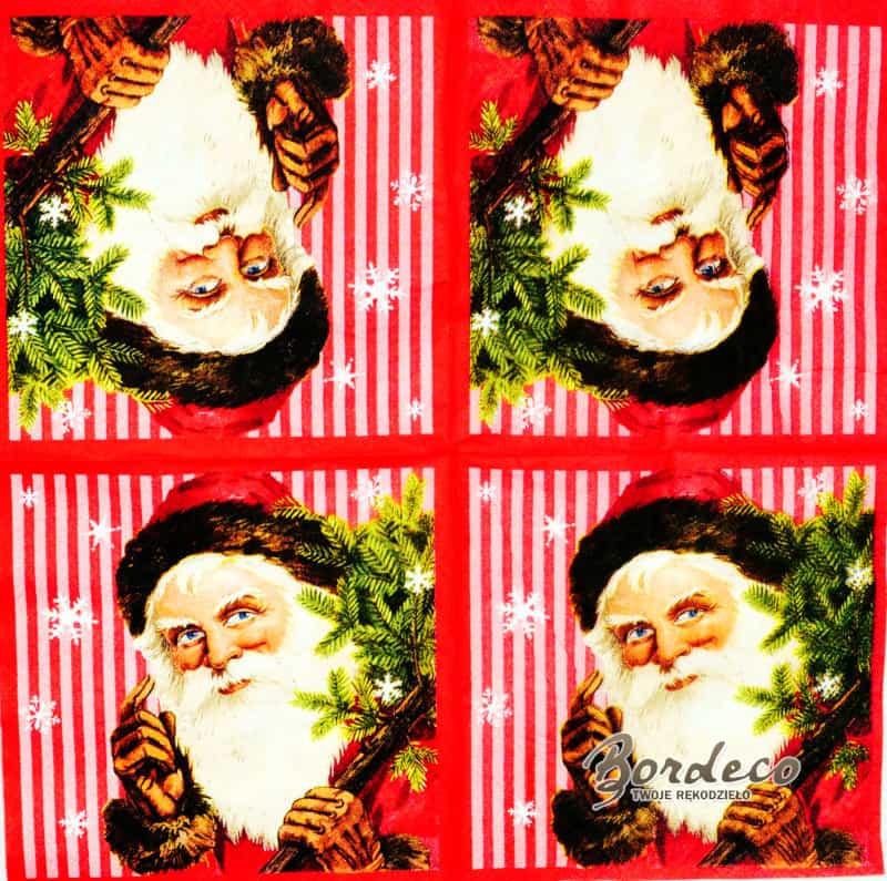 Serwetka do decoupage firmy ATELIER z motywem Mikołaja 33x33cm. Unikat.