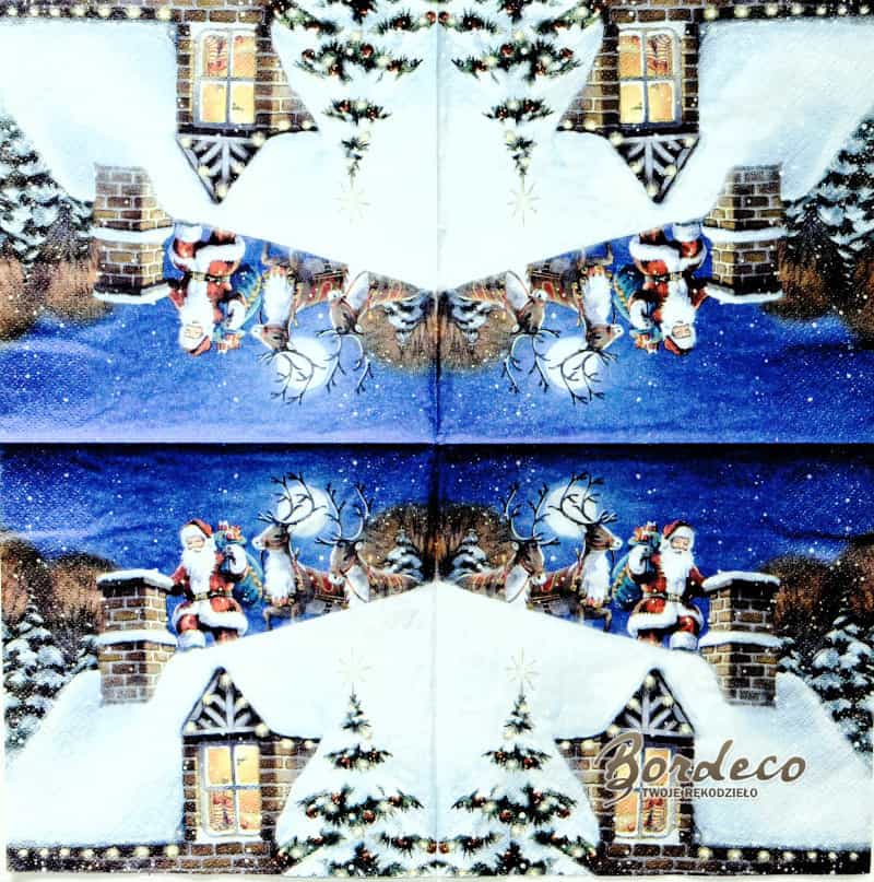 Serwetka do decoupage firmy JET PAPER seria TI-FLAIR z motywem Mikołaja na dachu z reniferami 33x33cm. Unikat.