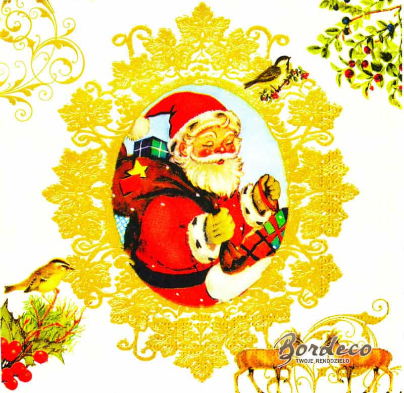 Strona główna ? Serwetki ? Serwetka do decoupage Mikołaj w złotej ramce vintage 33x33 PPD Unikat