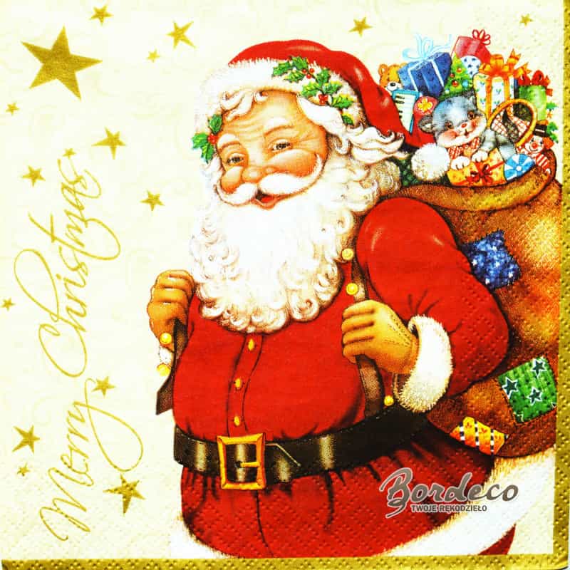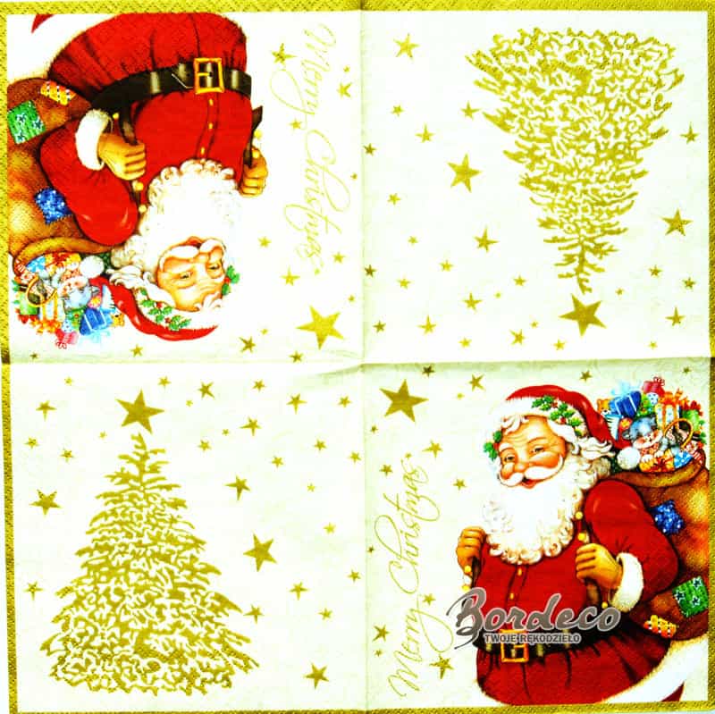 Strona główna ? Serwetki ? Serwetka do decoupage Mikołaj z workiem i złota choinka 33x33 MAKI, Unikat